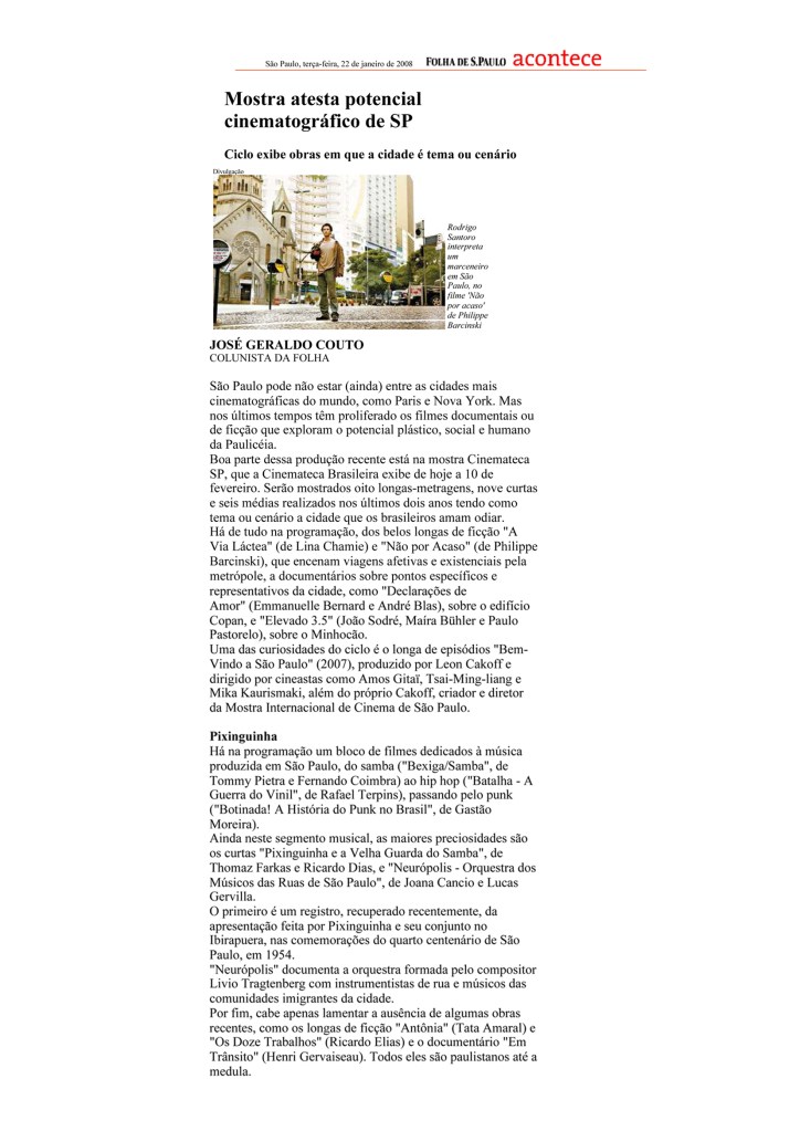 Cinesul 2007; 12ª Mostra Internacional do Filme Etnográfico 2007; 21ª Mostra do Audiovisual Paulista; Mostra Cinemateca SP 2008.