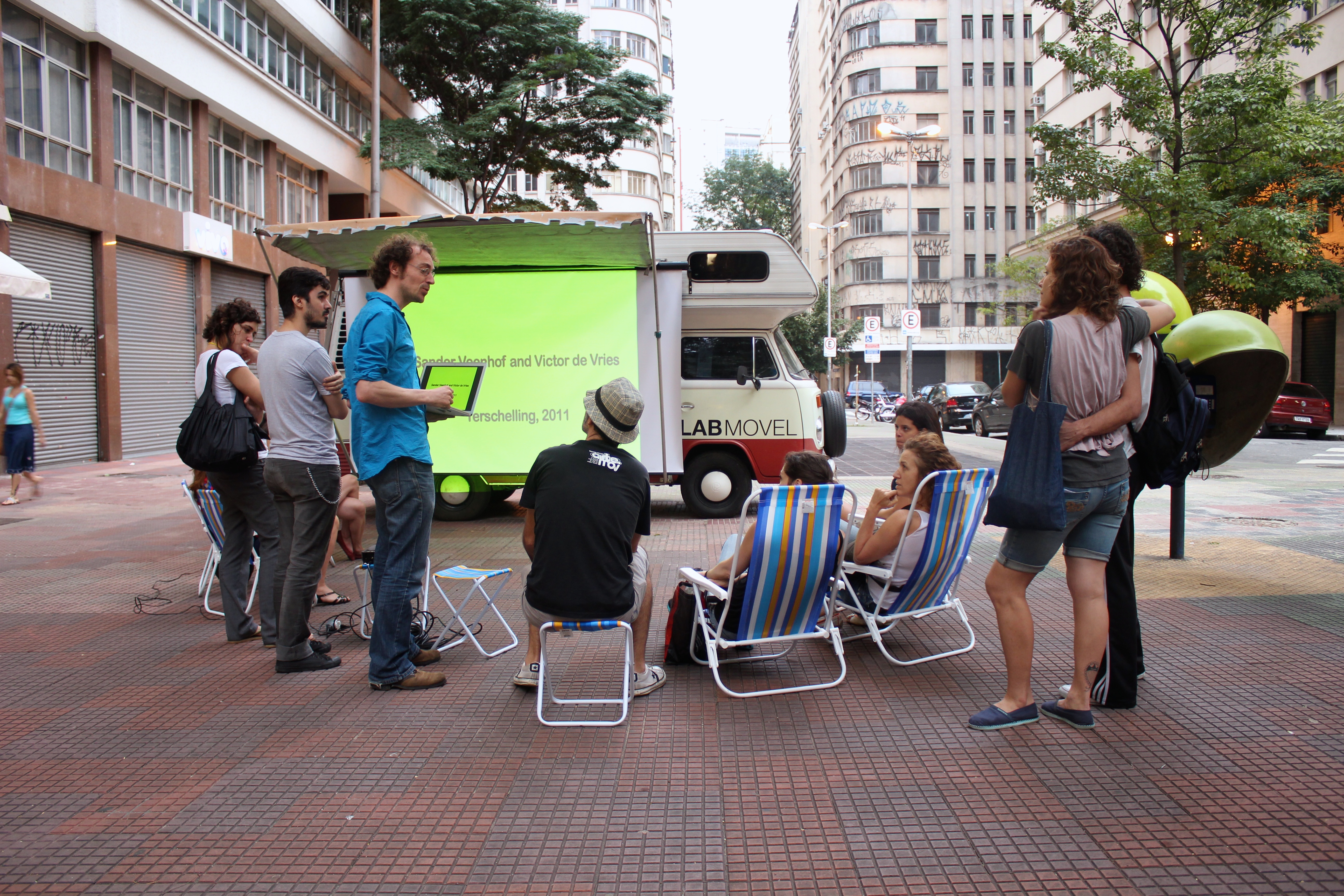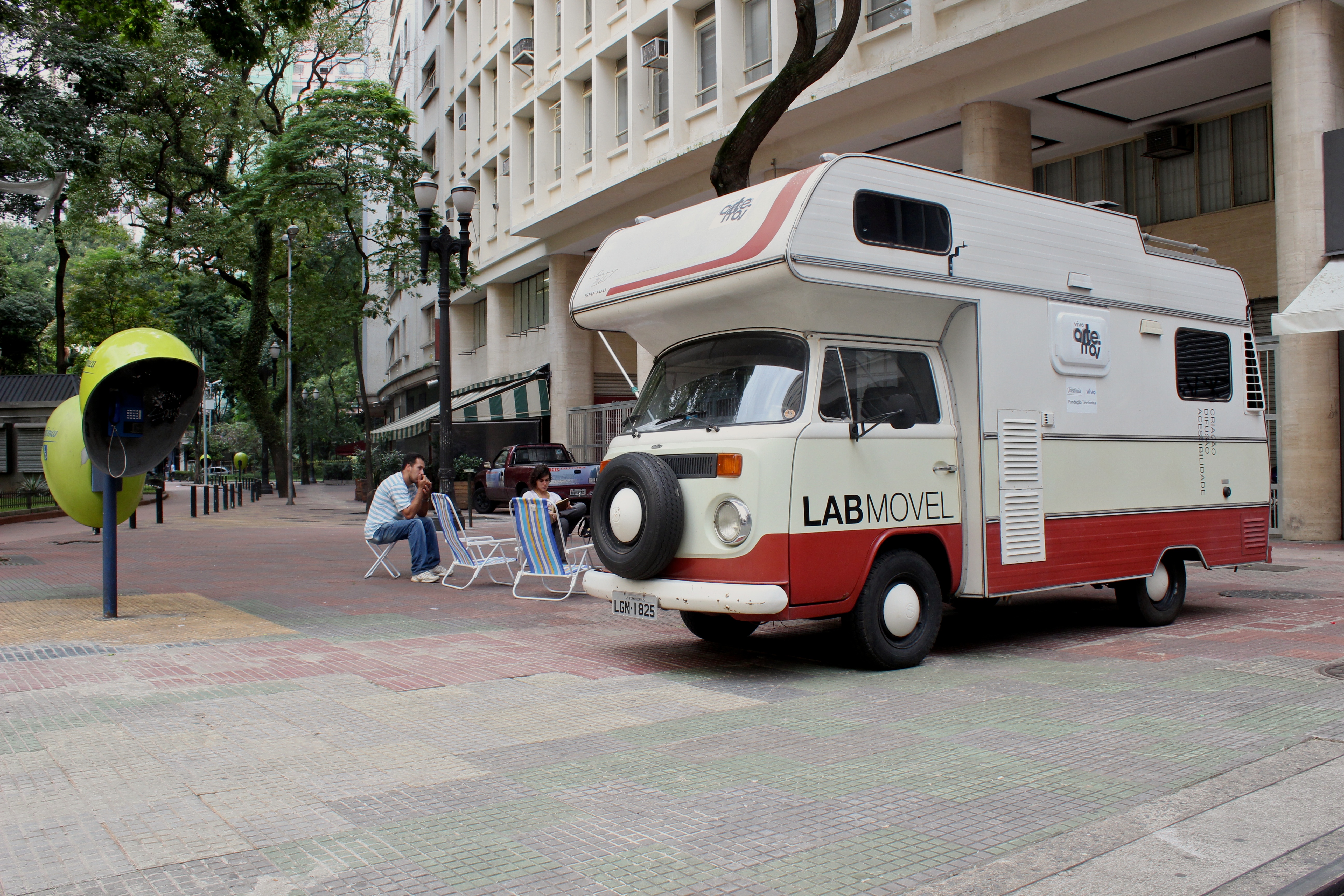 Estou fazendo o making of de um projeto chamado Labmovel. Se trata de um estúdio/laboratório criado em uma Kombi motorhome, e o objetivo é visitar lugares da cidade de São Paulo expondo trabalhos e atividades relacionadas às mídias móveis. Com um caráter nômade, o programa visa ajudar a criar ambientes temporários, que despertem a curiosidade e maior acesso a situações fora do eixo institucional, favorecendo um cruzamento de origens culturais, sociais e econômicas diversas.