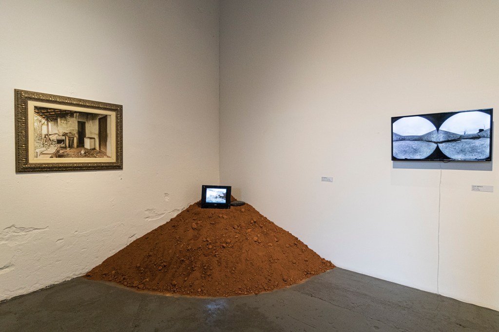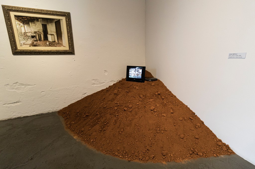“Iron, Mud, and Cooper” is an installation that presents a photograph and a video taken in the regions of Brumadinho and Bento Rodrigues-MG, areas that were victims of the two most significant environmental crimes in Brazilian history. The images depict the ruins of places that once were homes and a school but today are abandoned. The artwork proposes a temporal suspension of places that exist only in the memories of those who lived there. In the exhibition space, listening to ambient sounds captured in both scenarios is also possible.